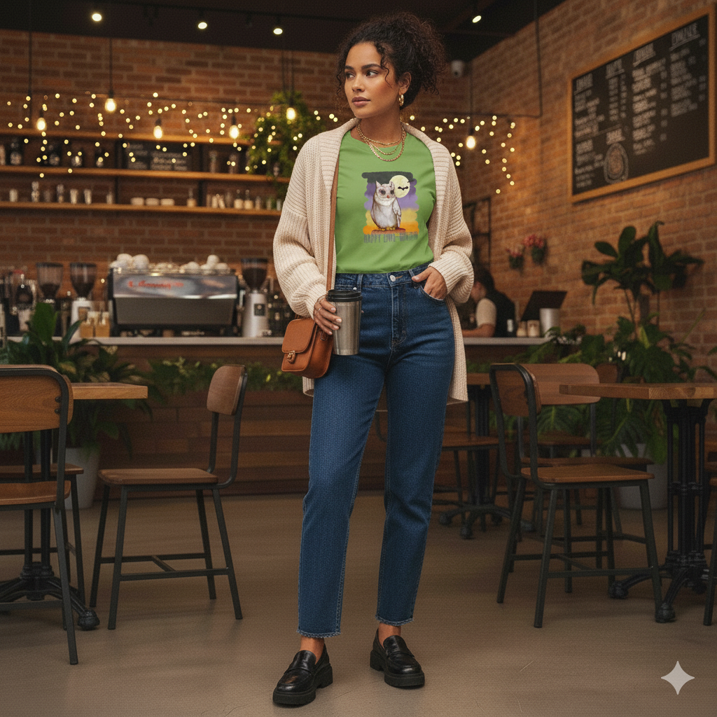 Women's cute "Happy Owl-oween" Halloween tee. This just might be the softest and most comfortable women's t-shirt you'll ever own. Combine the relaxed fit and smooth fabric of this tee with jeans to create an effortless every-day outfit.