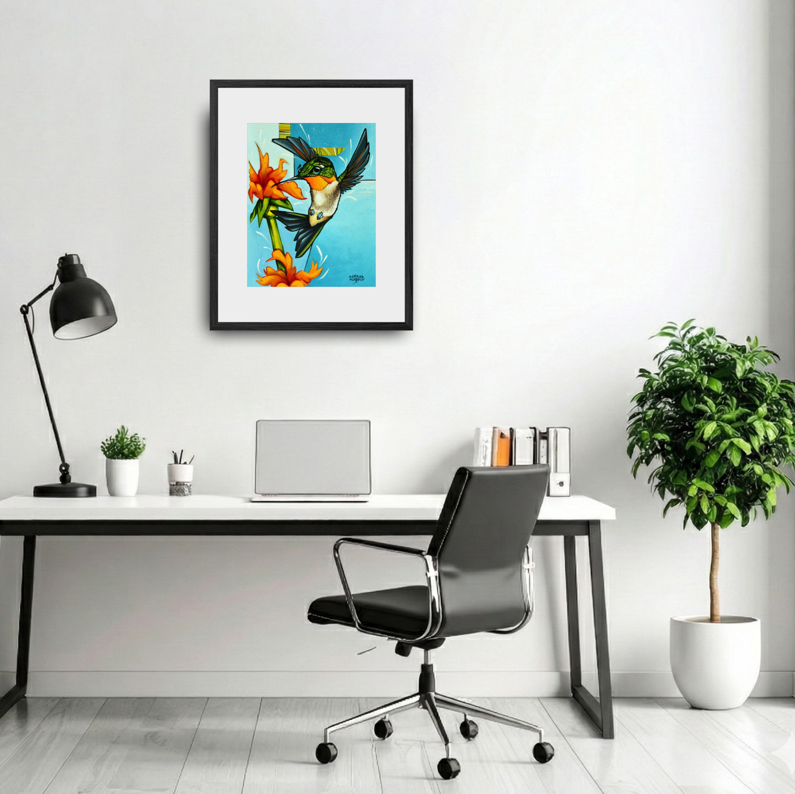 This painting is all about appreciation for the small moments that brighten a day. Hummingbirds always carry that feeling for me. They show up fast, full of color and energy, and are gone just as quickly. I paired this little bird with bright orange blooms to capture that spark of joy they bring.